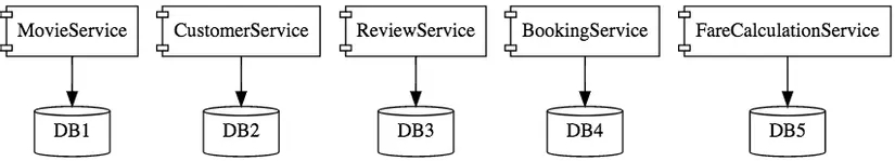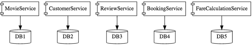 The picture below illustrates the above application when built according to Microservices architecture