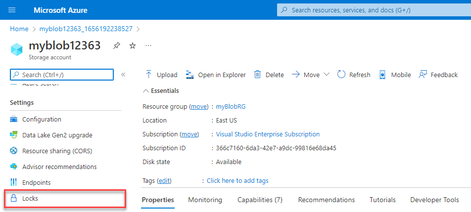 To view, add, or delete locks in the Azure portal, go to the Settings section of any resource's Settings pane in the Azure portal.
