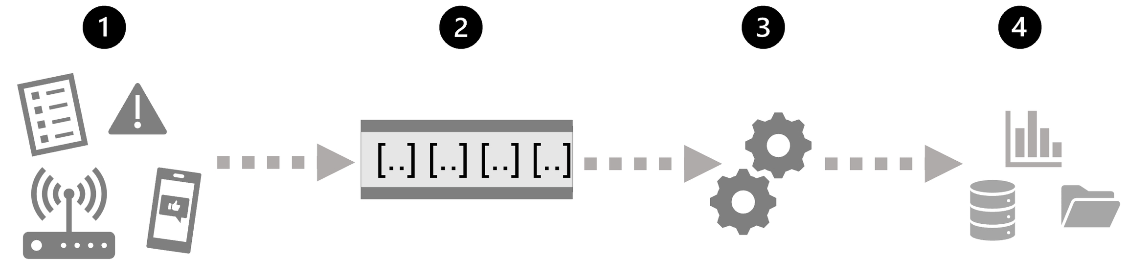 An event generates some data. This might be a signal being emitted by a sensor, a social media message being posted, a log file entry being written, or any other occurrence that results in some digital data.