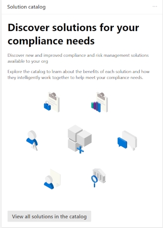 The Solution catalog card, links to collections of integrated solutions to help you manage end-to-end compliance scenarios. Solutions areas included: