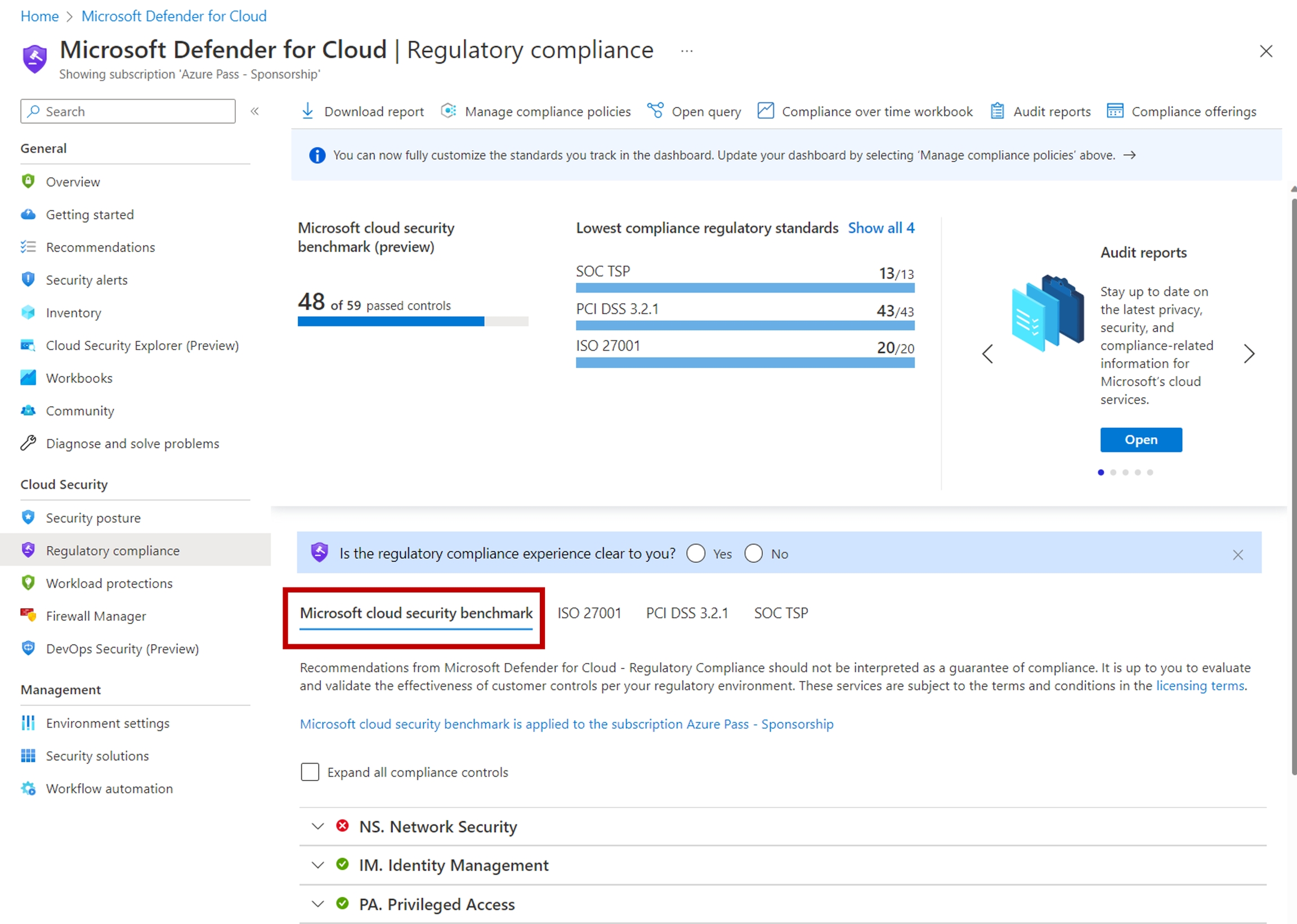 Microsoft cloud security benchmark