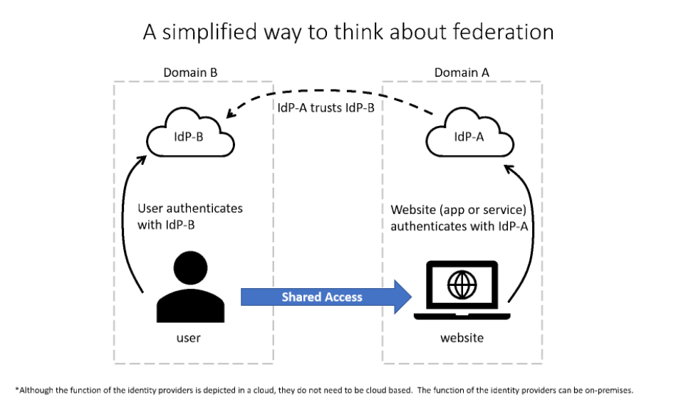 With federation, trust isn't always bidirectional. Although IdP-A may trust IdP-B and allow the user in domain B to access the website in domain A, the opposite isn't true, unless that trust relationship is configured.
