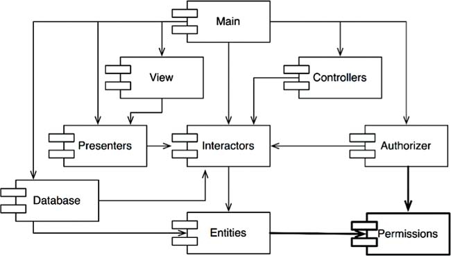 In fact, component dependency diagrams have very little do to with describing the function of the application. Instead, they are a map to the buildability and maintainability of the application. This is why they aren’t designed at the beginning of the project. There is no software to build or maintain, so there is no need for a build and maintenance map. But as more and more modules accumulate in the early stages of implementation and design, there is a growing need to manage the dependencies so that the project can be developed without the “morning after syndrome.” Moreover, we want to keep changes as localized as possible, so we start paying attention to the SRP and CCP and collocate classes that are likely to change together.