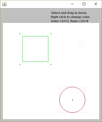 This graphical editor allows changing the color and position of the shapes on the screen. Any modification can be undone and repeated, though.