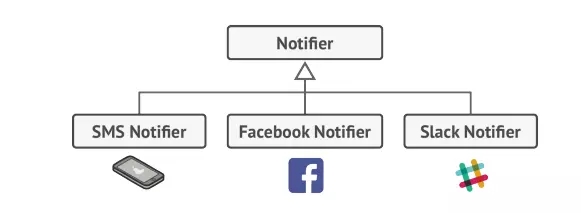 You have extended the Notifier class and included additional notification methods in new subclasses. Now the client must instantiate the desired notification class and use it for all subsequent notifications.