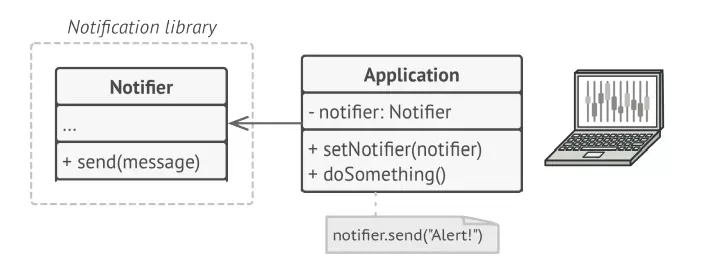 The initial version of the library is based on the Notifier class with only a few fields, a constructor, and a single submit method. This method can accept a notification argument from a client application and send the notification to a list of emails that have been passed to the notifier via its constructor. A third-party application that acts as a client must create and configure the notifier object once and then use it every time something important happens.