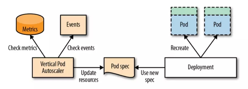 Updater: This component will check whether the Pod managed by the scalable resource has the correct CPU and memory according to the value of Recommender provided above. If not, it will kill that Pod and recreate a new Pod with the correct CPU and memory requests. Correctly updated according to Recommender.