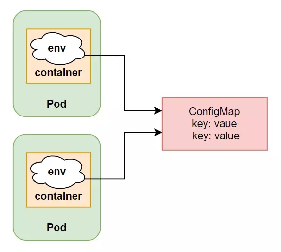Using env to pass configuration inside the container is very easy, but as our application gets larger and needs more and more env, we will realize that specifying env directly in the Pod like this has many limitations. Firstly, our config file will be extremely long, secondly, if there are some envs we will use over and over again, we will copy and paste them in many places. For example: