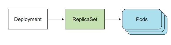 When we create a Deployment, it will create a ReplicaSet below, and the ReplicaSet will create a Pod. The flow is as follows: Deployment creates and manages ReplicaSet -> ReplicaSet creates and manages Pod -> Pod run container .