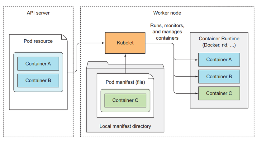 It will then listen to notifications from the API server about the Pod that is scheduled to it to create the corresponding runtime container. In addition, kubelet also monitors the container and sends that information to the API server. When a Pod is deleted from the API server, the API server will notify the kubelet and it will delete the container from the node. Once completed, it will send a notification back to the API server that the container corresponding to that Pod has been removed. finished deleting.