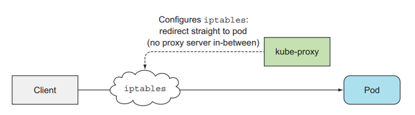 In this userspace mode, its performance is quite poor, so kubernetes developed the second mode, iptable. In this mode, the request will go straight from iptable to Pod. The task of kube-proxy now is to configure the path of a request to the Pod inside iptable.