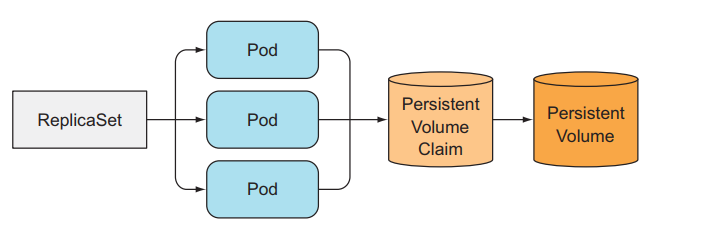 Because ReplicaSet creates multiple pod replicas from a Pod template, those replicated Pods are no different from other Pods except for name and IP. If we configure the volume in the Pod template, all replicated Pods will store data in the same storage.