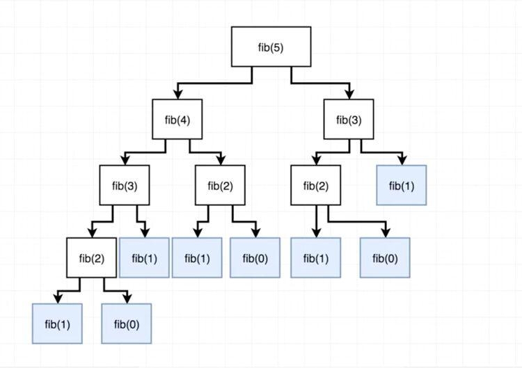 ) until the final case is reached, a lot of work will be done and it will take time to arrive at the final result, because there is a repeated calculation of certain values in the series. Looking at the diagram below, when we try to calculate fibonacci(5)