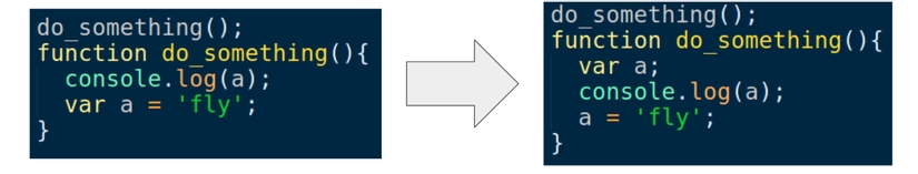 The Javascript compiler will move the declaration of variables and functions to the top, it is called Hoisting