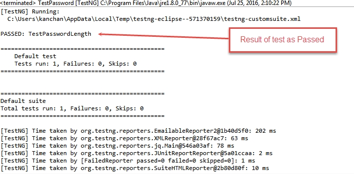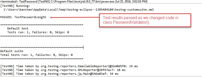 After making changes to class PassValidator () if we run the test then the output will be PASSED as shown below.